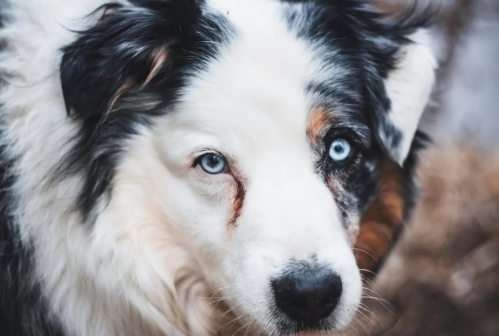 This energetic mix of the Australian Shepherd and Siberian Husky often inherits dazzling blue eyes. While some have both eyes blue, others display heterochromia or marbled eyes. Their piercing gaze complements their intelligence and boundless energy.